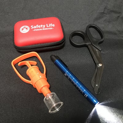 布担架、ネックカラー、聴診器、血圧計(手動&自動)、ポイズンリムーバー、バックバルブマスク、ポケットマスク、レサシエード、パルスオキシメーター、プラスモイスト、パーミロール、ペンライト、体温計、二トリルグローブ、エマージェンシーシザー、サムスプリント、三角巾。