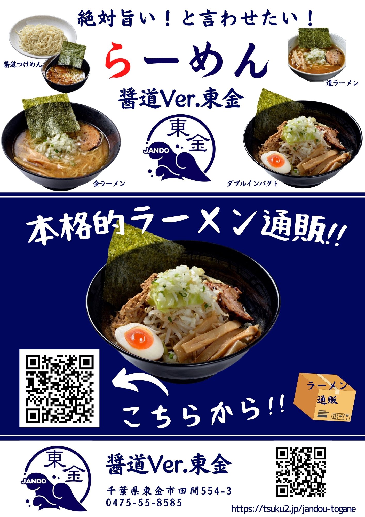 千葉県東金市にある醤油ラーメン専門店醤道ver.東金!ラーメン通販も絶賛販売中