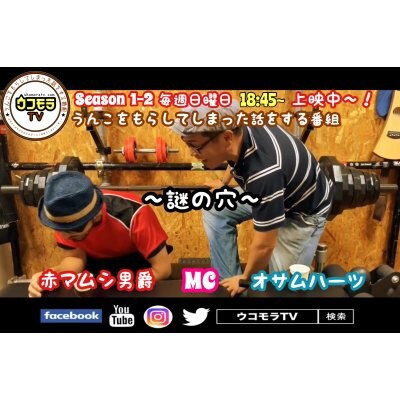 うんこをもらした話をする番組「ウコモラTV」とは、番組Exプロデューサーでもある赤マムシ男爵と番組ディレクターであるオサムハーツの同級生2人組がMCを務める超ウルトラスーパー笑劇、エンターテイメント型医療系番組である。