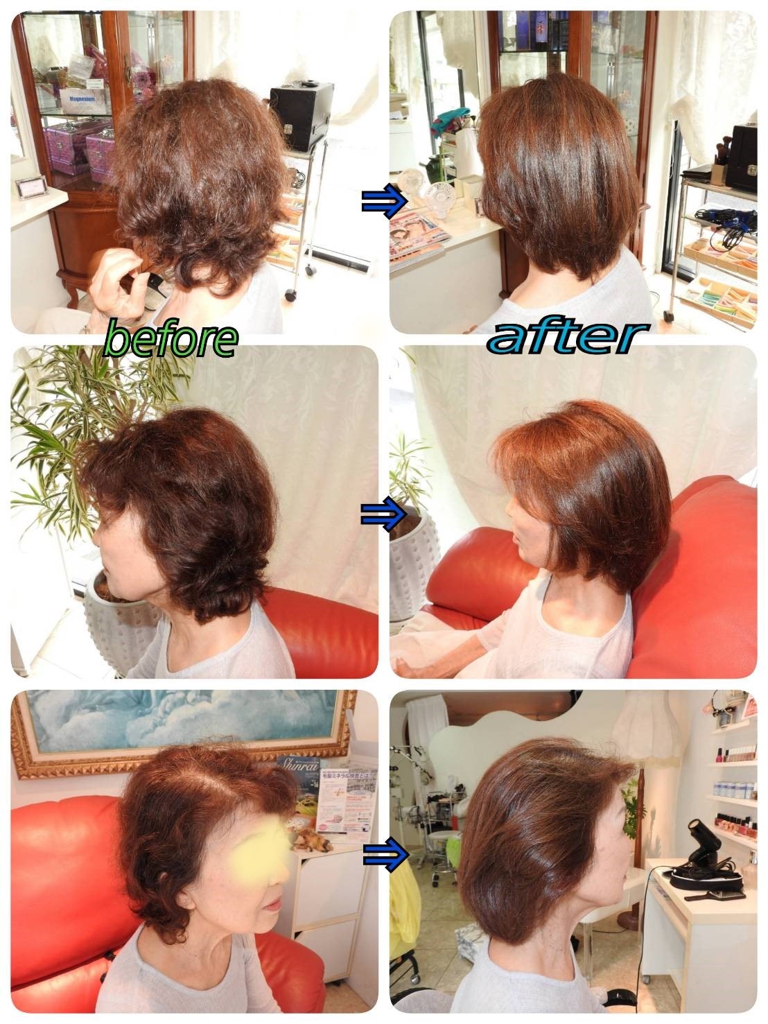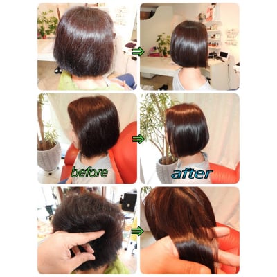 日頃美容院で縮毛矯正やストレートにカラーやパーマを繰り返して起きてしまうお客様の悩みであるくせ毛、うねり、エイジング毛、バサバサ、枝毛、ふくらみ等年齢問わず問題解決させていただきます。