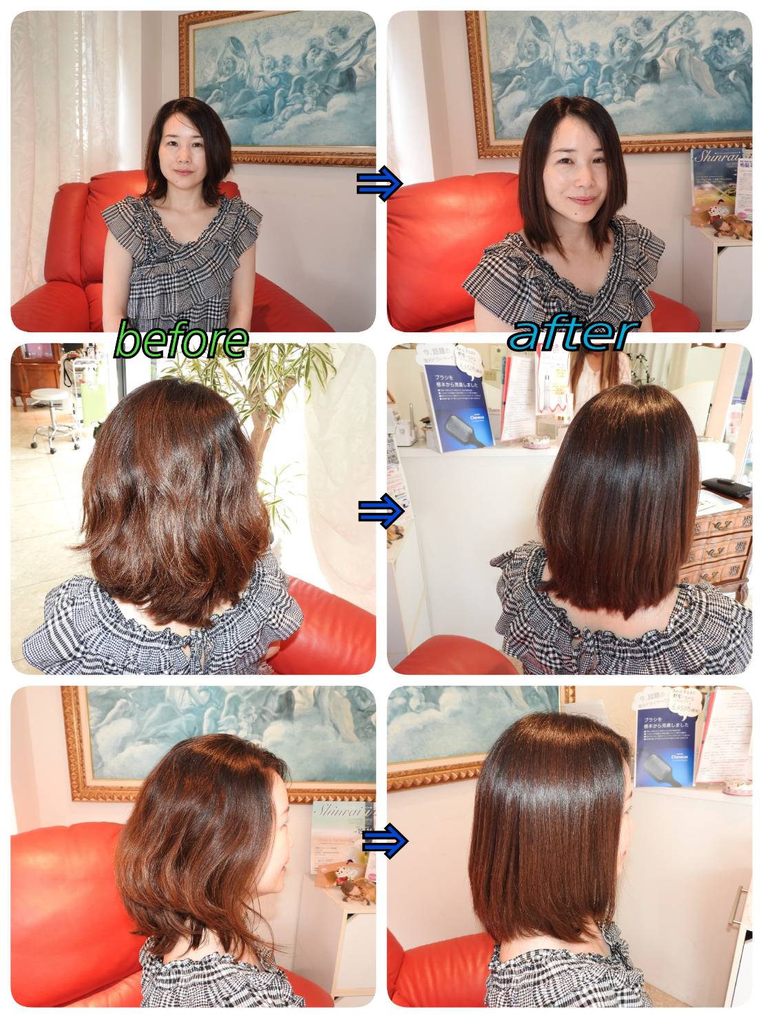 酸性ストレート名古屋専門フローリスでは、そのほかKAMIエステ(シャンプーブロー)、美髪ピュア(酸熱トリートメント)という艶髪・髪質改善に導くヘアケア施術もご提案しています。