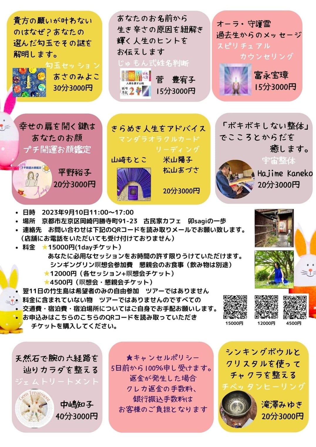 総勢9組10名のプロフェッショナルな皆様が集い、心と体に良いことしてくれます。