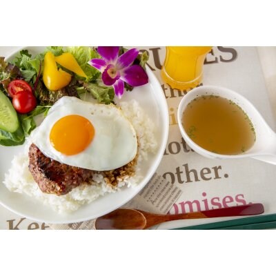ランチメニューのオススメはなんと言ってもロコモコ・タコライス‼︎ランチタイムには全てのメニューにスープがついております。