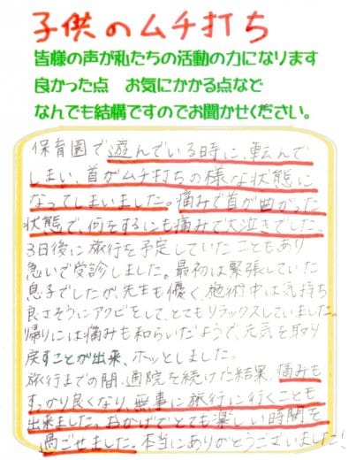 ・子供のムチ打ち治療 自賠責保険扱いの場合は患者様の負担はありません