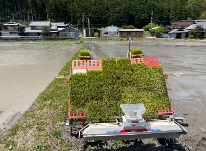田植えから、刈り取り・乾燥・籾摺りを経て、できた米は玄米のまま13度で保存。