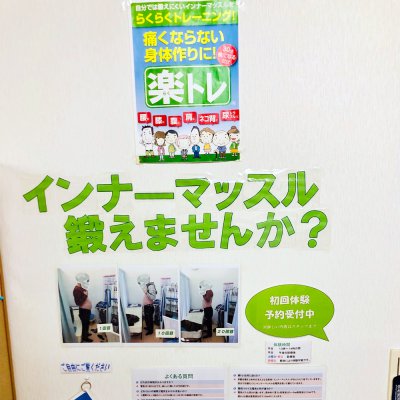 自由診療の方では今様々なところで話題となっているインナーマッスル(身体を中から常に支えている大事な筋肉)を30分電気を流す事で鍛える「楽トレ」をご用意しています。痛みが取れても定期的に痛みが出てしまう方、長くスポーツを続けたい方やパフォーマンスを上げたい方など施術と併行して自分で鍛えるよりも早く筋肉をつける事が出来ます。