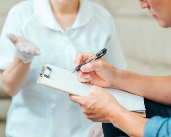 ①来院後まず問診票に記入いただきます。