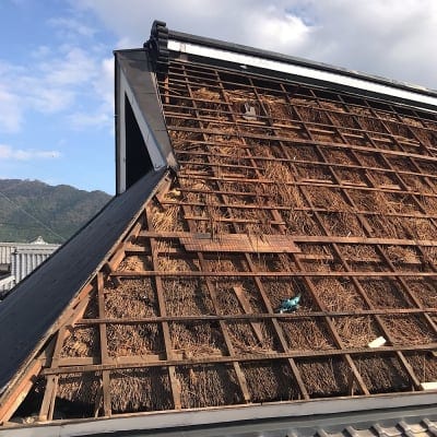 当社は、祖父が昭和23年に「大地板金店」を立ち上げ、お米の貯蔵缶や衣装箱などを手加工し製造販売しておりました。後に建築の移り変わりとともに、茅葺屋根の上に金属屋根を覆う、屋根工事を多く手掛けておりました。今では都会の方で田舎暮らしをしたい方などは、夏は涼しく風情があり、すこし人気も出ているそうです。