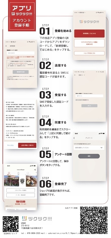 ②アプリダウンロード後、下の画像の登録手順に従い登録を行ってください。