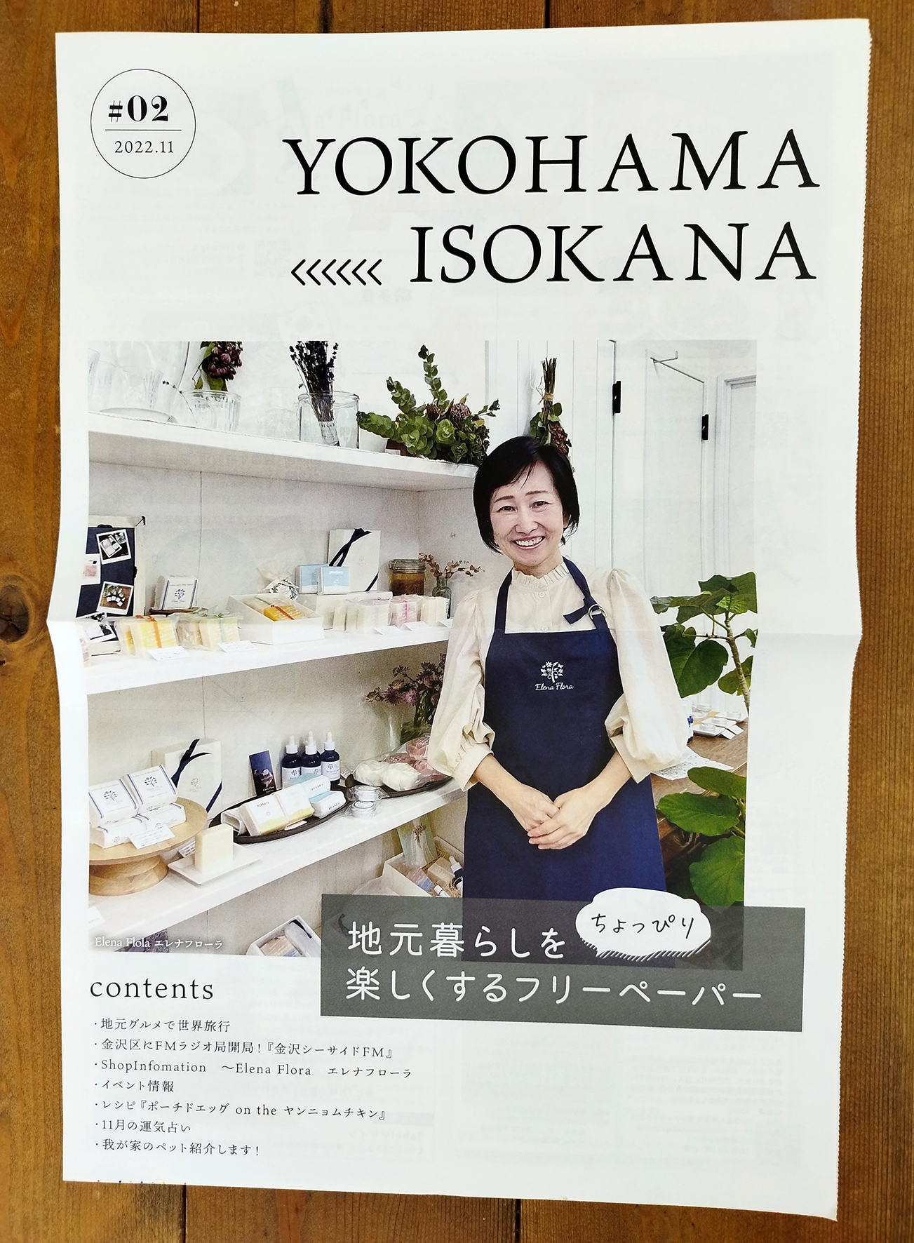 2022年11月 地元、横浜市金沢区・磯子区の情報発信局まいぷれさんのタウン誌「イソカナ」に表紙で取り上げていただきました。