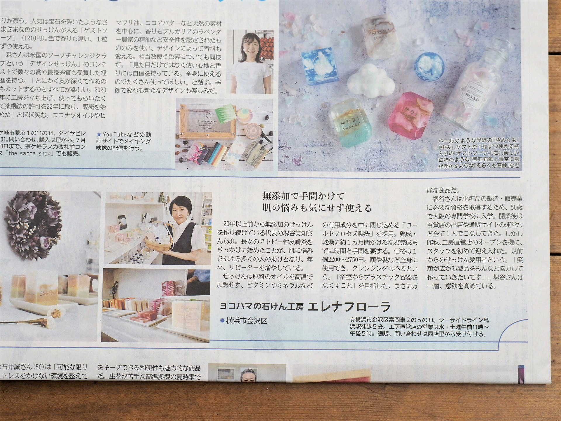 2018年12月に神奈川新聞社さん、2020年6月に東京新聞さんにエレナフローラの石けん作りについて取材をしていただきました。