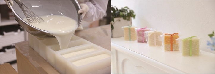エレナフローラではコールドプロセス製法でひとつひとつ丁寧におつくりしています。