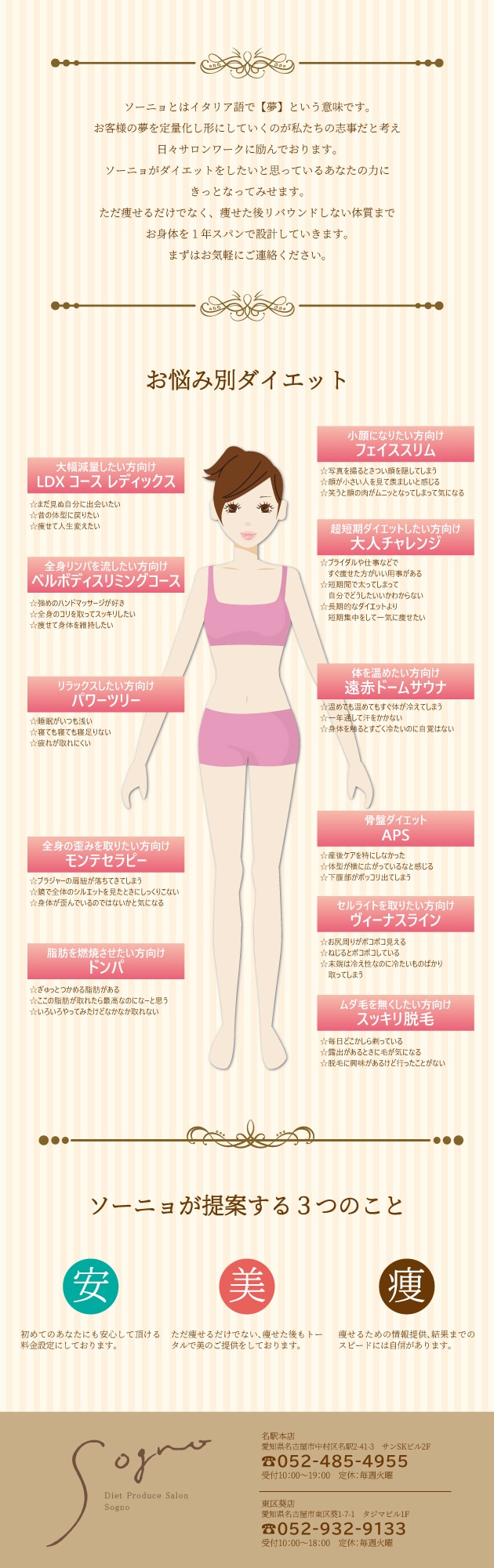 痩身のカリスマ的存在の名古屋のエステサロンSognoは圧倒的な満足度をお届けします。