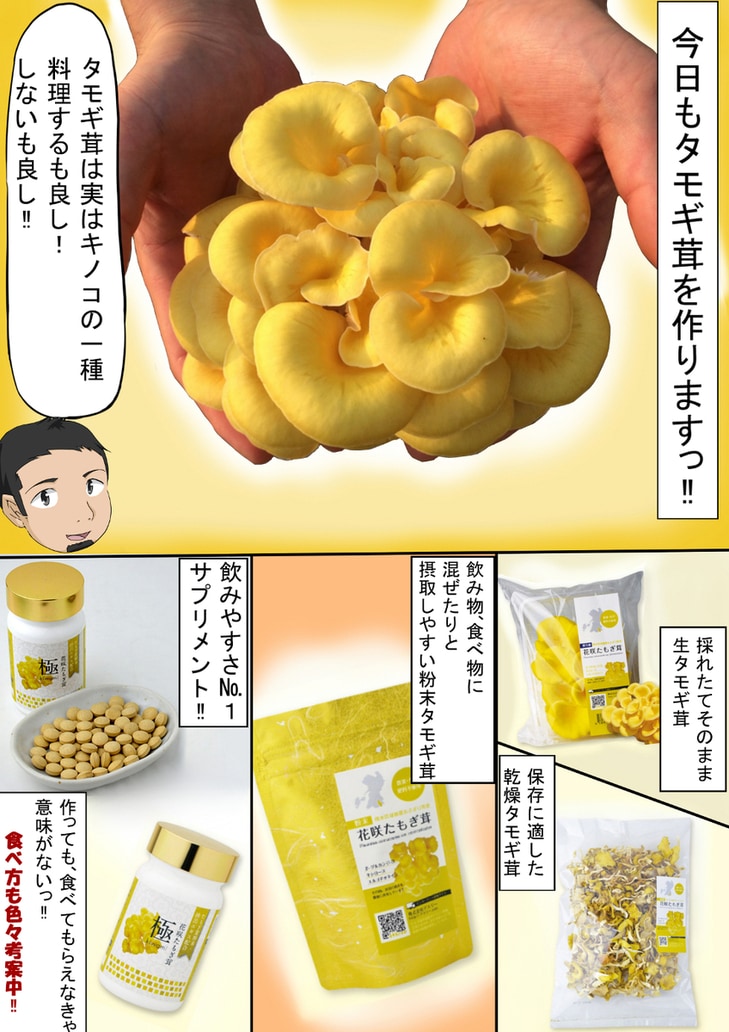 たもぎ茸は生のタイプが一般的ですが、この他にもサプリメントやパウダー、お茶などに加工された商品も多く販売しています。