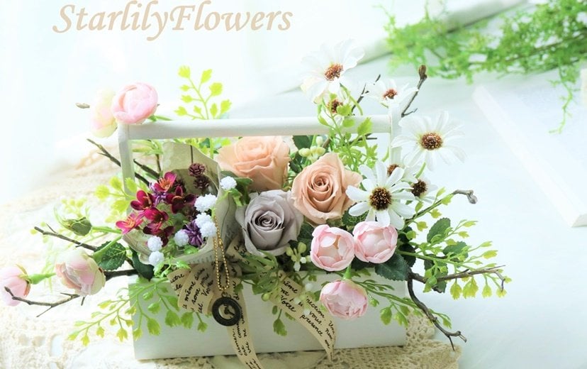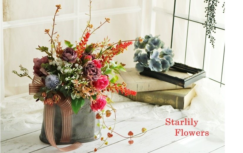 プリザーブドフラワーとアーティフィシャルフラワー(高品質な造花)を用いて、スターリリーフラワーズオリジナルのデザインで制作ししておりますのでほとんど1点ものの商品を掲載しております。