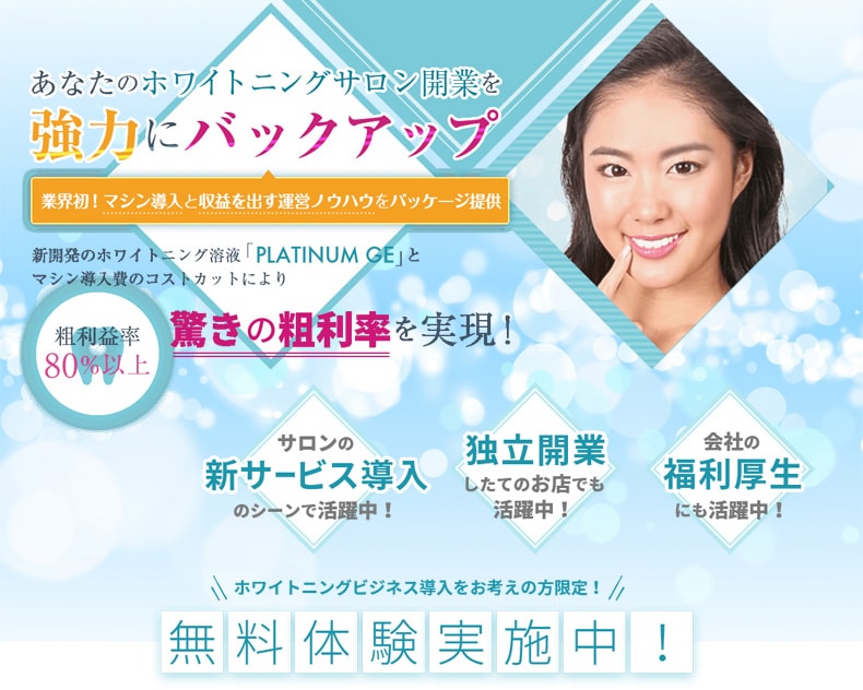 公式サイトはこちら:セルフホワイトニング機器導入・開業なら「プラチナムGE」