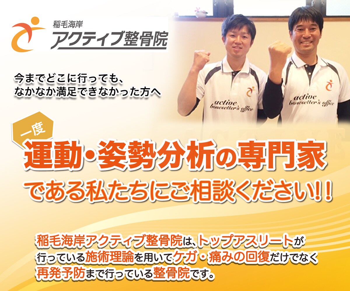 この度は稲毛海岸アクティブ整骨院のホームページをご覧くださりありがとうございます。