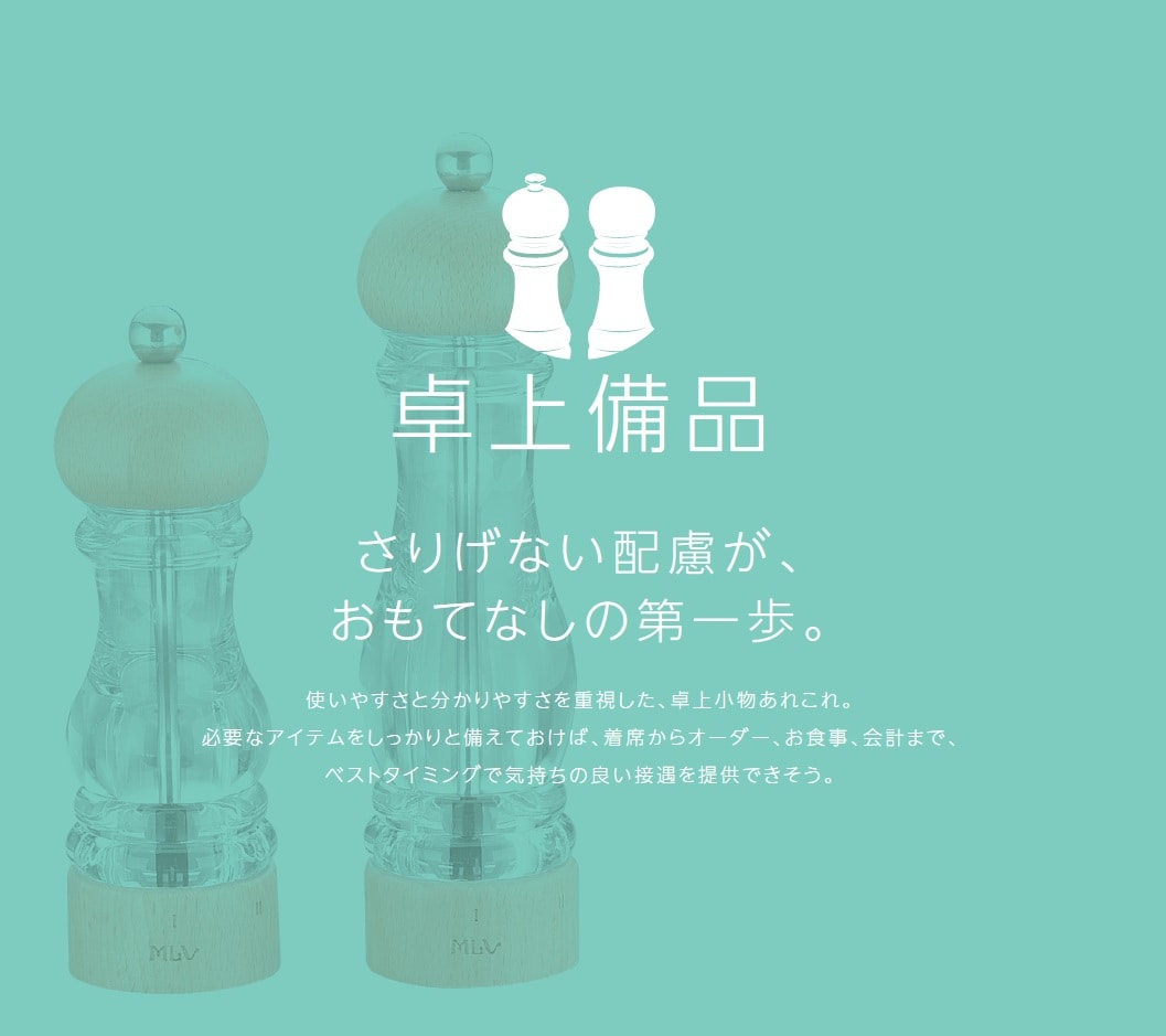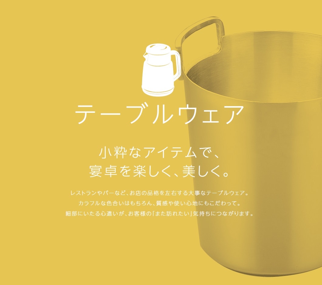 業務用から家庭用までお客様のニーズに合わせ商品をご提供します。業務用卸も行っています。厨房用品、卓上用品、テーブルや椅子などのインテリアまで幅広くご提案できる商品を取り揃えております、飲食店等の業務用でご要望の方はお気軽にお問い合わせください。
