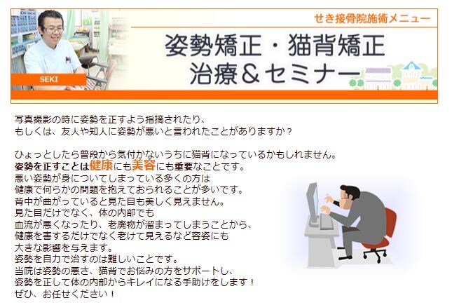身体の不調の根本原因〜姿勢改善〜なら姿勢教育指導士の長野県岡谷市の接骨院【せき接骨院・せき整体院・ぴゅあスリム】にお任せください!】