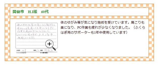 お陰様で痛みで悩むことがなくなり普通の生活が出来るようになりました。