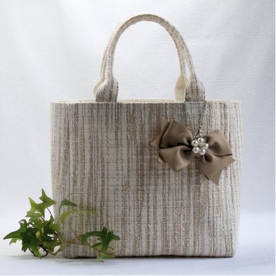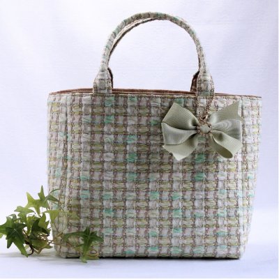 このたび、一着分ずつクライアント様のニーズに合わせて揃えたツイード服地でおしゃれなトートバッグを作ることを思い立ちました。機能性が重要視されるバッグですが、コンサバティブな印象のツイードスーツとツイードバッグで、機能性だけではないバッグの存在感が女性に美しく知的な印象を与えます。ぜひあなたを輝かせるツイードトートバックをアクセサリーのようにお使いください。