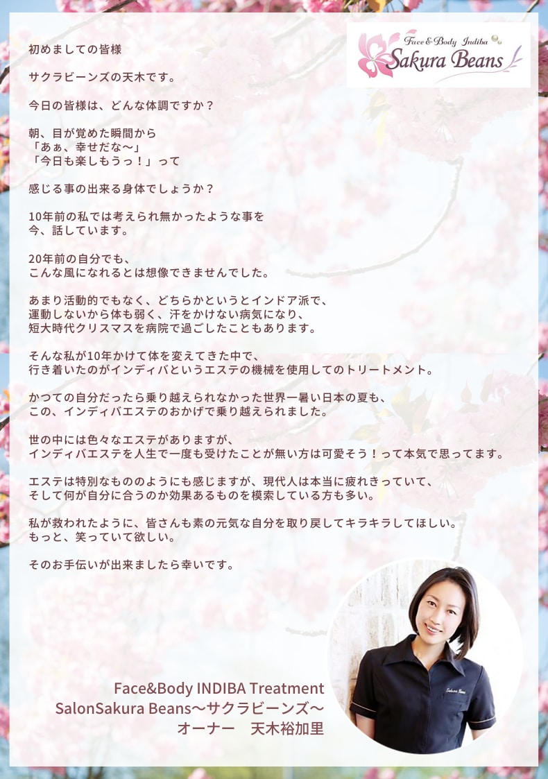 と、過去に色々試し、あらゆる体ケアを頑張ってきた方ほど、より感動して頂けるサクラビーンズのエステです。