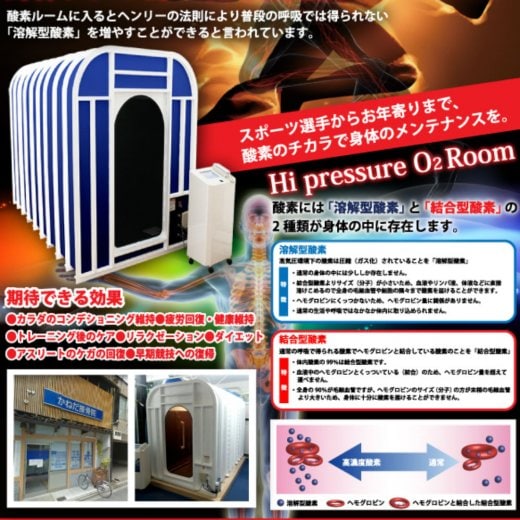 酸素ルーム に入るとヘンリーの法則により日常の呼吸では得られない「溶存型酸素」を増やすことができると言われております。
