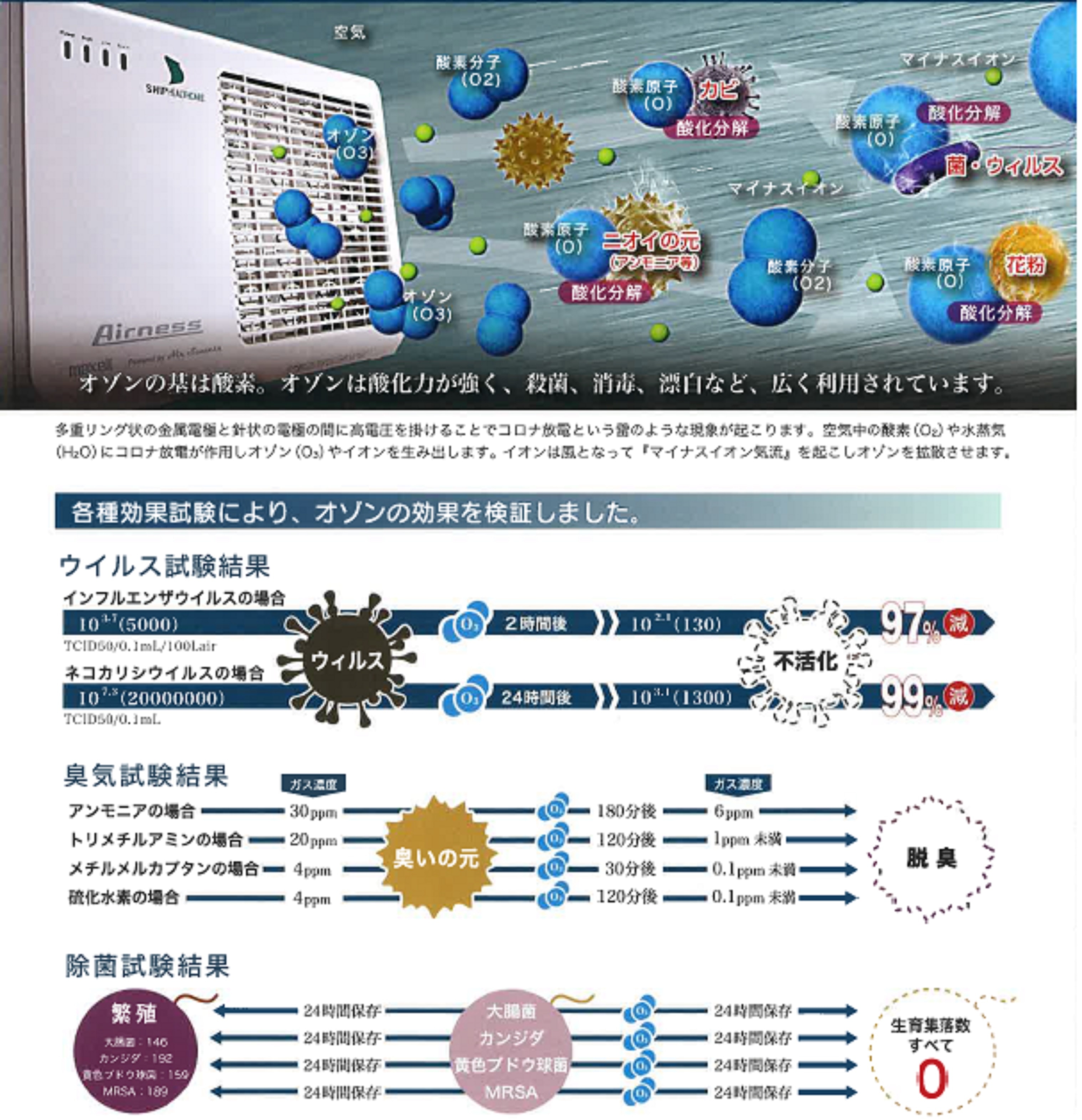 特許技術「多重リング式コロナ放電」が放つ「低濃度拡散オゾン」と「マイナスイオン気流」