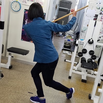 運動療法としては障害や傷害をうけた部位の筋力トレーニングを行い、再発しないように強化することを目標としています。