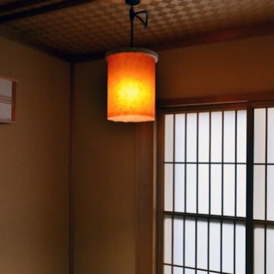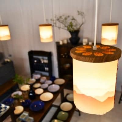 和紙をロウ引き加工することで、みずみずしい光り方をするペンダントライトです。様々なお部屋に落ち着いた光を演出しますのでご自宅のお部屋・リビングにはもちろん、和食・カフェなどの飲食店様などにもおすすめです。新潟産の天然コウゾを使用した手漉き和紙を柿渋染しています。門出和紙は、自家栽培の楮(コウゾ)の採れる年ごとの色味や、紙を漉く季節に使用する川の色の変化により、和紙の色合いが豊かになっています。また手すき和紙は、経年により白くなっていく性質があります。ベースに使用される越後杉も同じように、自然乾燥による表面の柔らかさに加えて、土壌や生育条件により濃いブラウンからピンク、白など、無垢板の同じ面にも色味にバリエーションがあります。本物の自然素材だからこそ面白い、色の組み合わせや変化をお楽しみください。