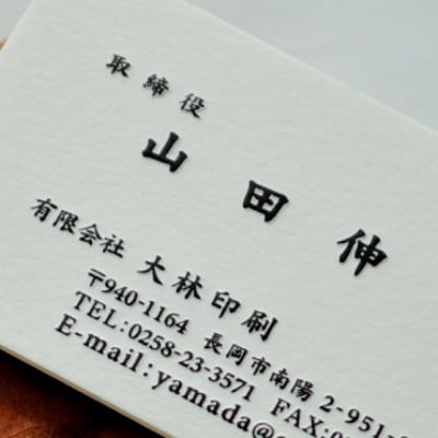 ●黒光りした姿がカッコいいデルマックス印刷機●凸版で力強く印字された名刺は独特の風合いと気品があります。 実際に立体感のある名刺です。指触りで覚えてもらえます。●耳付き小国和紙でも印刷できます。機械でナンバリング、活版印刷ができます。他の機種でもナンバリングができます。●浮き出し印刷/文字が浮き出ていてインパクトがあります。同じく立体名刺、指触りで覚えてもらえます。小国手漉き和紙も活版印刷できます。活版機で印刷すると、凹んでレトロ調にできます。