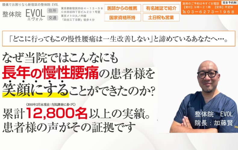 身体のプロフェッショナルの証である国家資格を持ち、これまで多くの腰痛に」に苦しむ方、スポーツ選手、著名人を痛みから救ってきたEVOL 整体院でもう2度と痛みで悩まない人生を手に入れる道