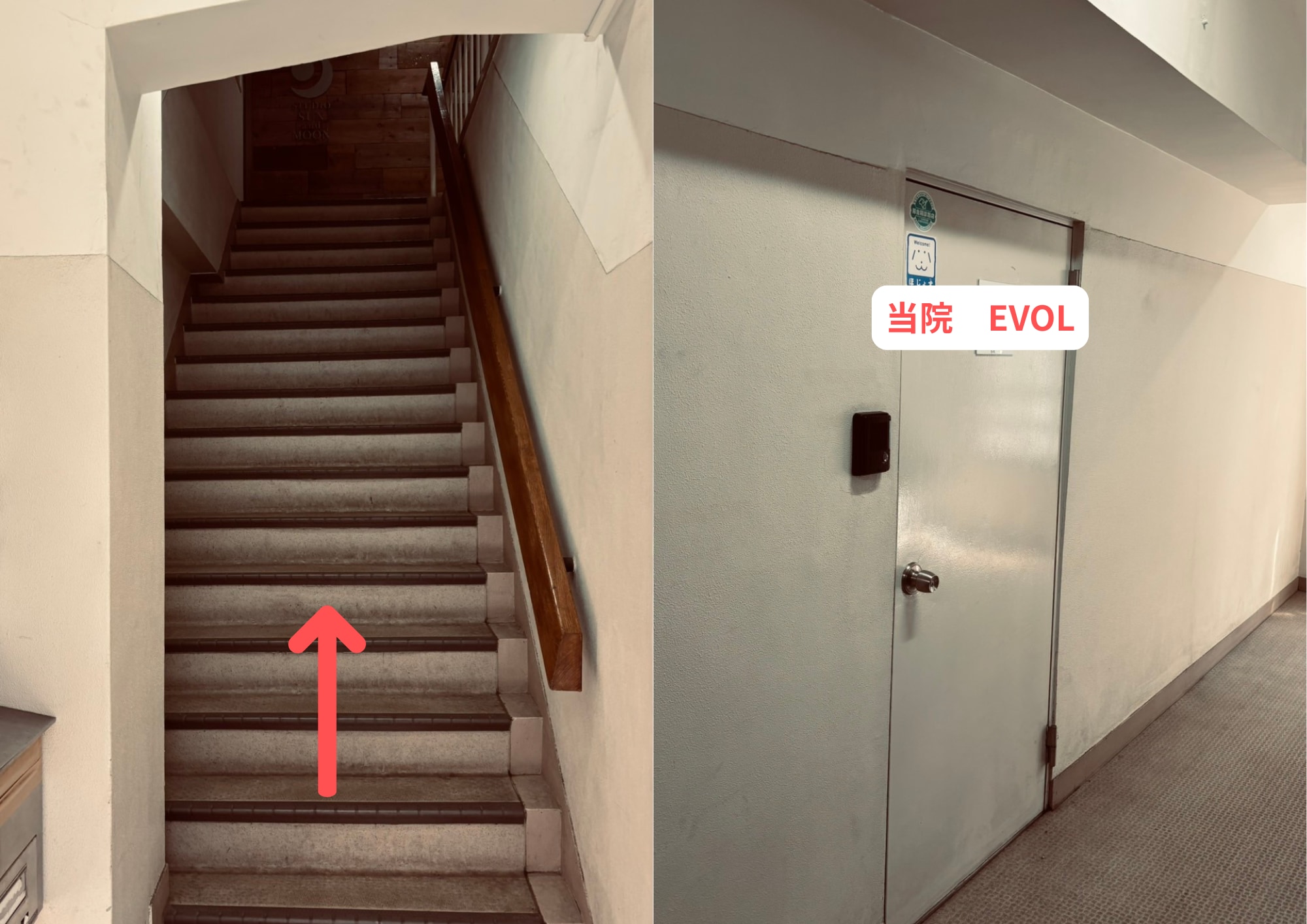 7階段を上がって右側に進むと当院がございます。