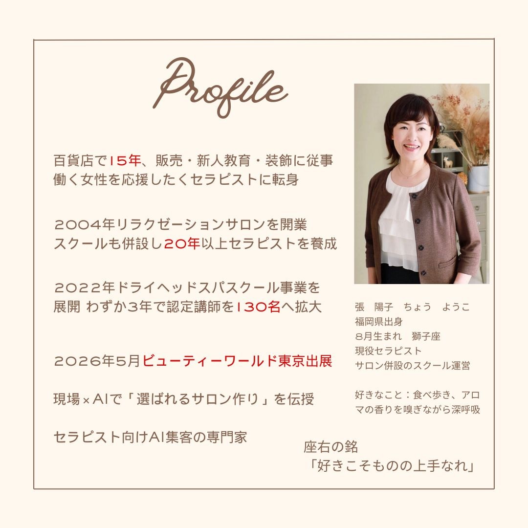張 陽子(Yoko Cho) アジアンセラピーサララ代表/セラピスト向けAI集客の専門家