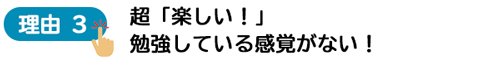 (3)当講座は、講師の情熱がこもった、全身を使う楽しい学習法です。だから、長続きします。普通の英語講座とは全く異なり、勉強的な感覚がなく、ゲーム感覚で楽しみながら、英語を身につけることができます。