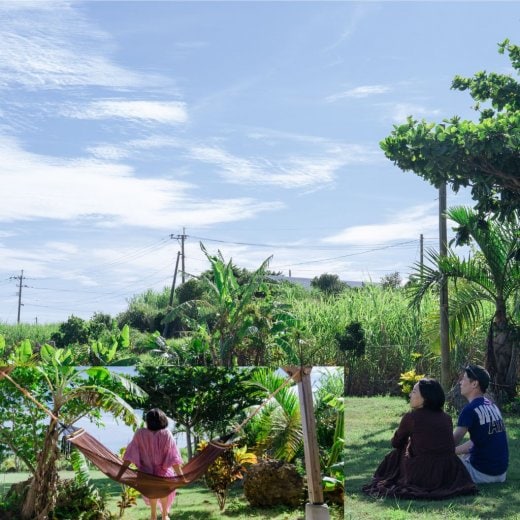 癒やしのハンモック: 宿の廻りには3か所にハンモックを設置。夕方、陽が傾いてきた頃に潮風を感じながら、ゆったりとした島時間をお過ごしください。