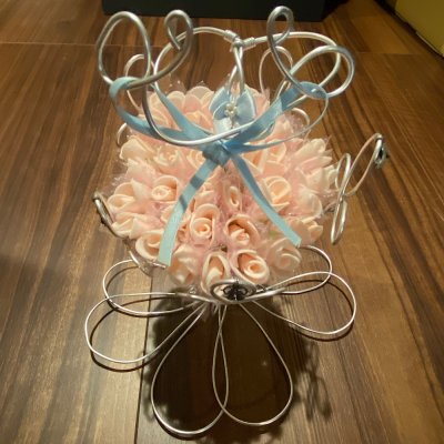 てくれました。「繋ぐ」「叶う」が「叶え結び」のワイヤーアート作品として