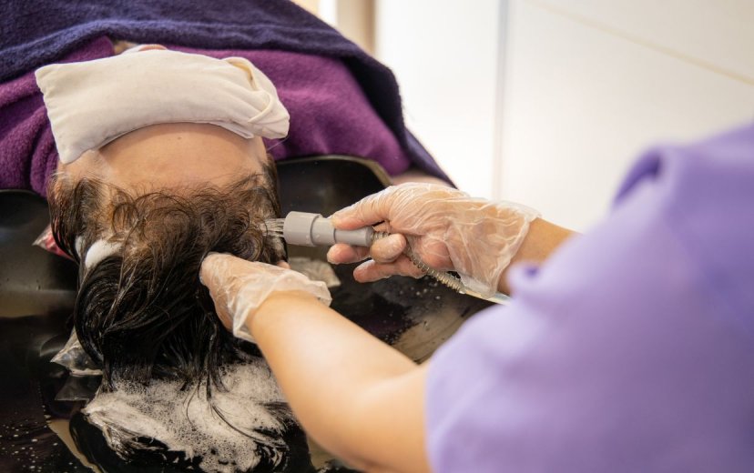 さらに髪と頭皮に水分と保湿力の高いβソープで頭皮をしっかりと保湿していきます。