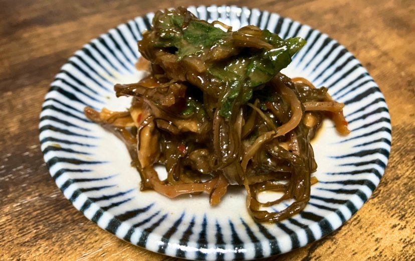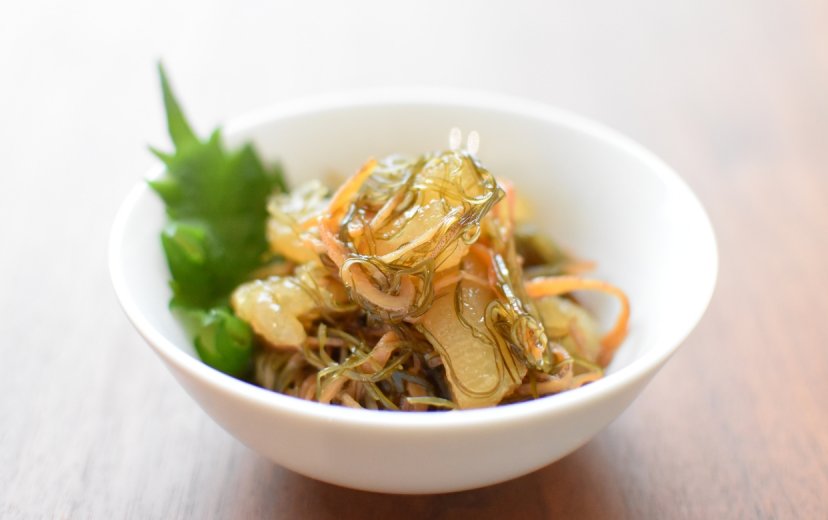水に浸してひと晩置くと、翌朝には浸けておいた水がとろとろになっているほどの驚異的な粘りをもつがごめ昆布。