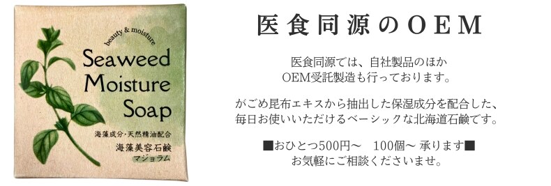 弊社の石鹸は、がごめ昆布エキスから抽出した保湿成分を配合しております。