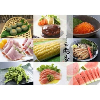 お米/もちぶた/つなんポーク/「鶴齢」粕漬け魚介類/「八海山」粕漬け魚介類/あゆ一夜干し/いわな一夜干し/美雪ます/八色すいか/八色しいたけ/雑穀米/笹だんご/とうもろこし(鬼もろこし)/メロン/巾着なす/きりざい/雪下にんじん/安納いも/ふきのとう味噌/かぐら南蛮みそ/こごみ/ぜんまい/木の芽/わらび/雪室野菜/うどキンピラ/雪国まいたけ/野沢菜漬け/こがねもち/お餅/妻有そば/へぎそば