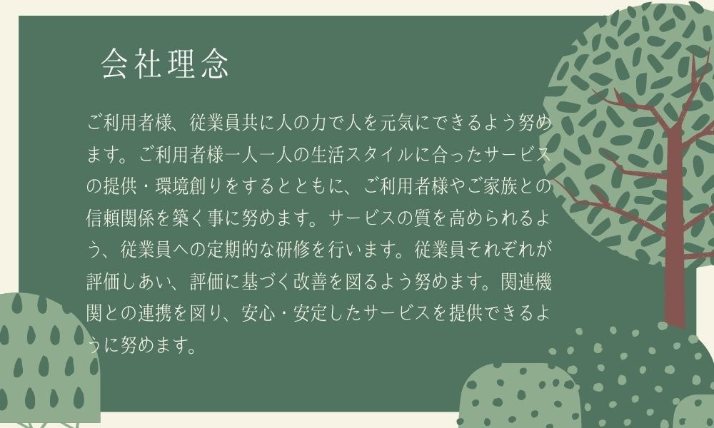 訪問介護やまゆりが、大事にしていること、「安全」「安心」「信頼」「コミュニケーション」。職員同士の情報交換や、利用者様に気を配ったコミュニケーションを行う事で、利用者様・及び職員同士の信頼関係を築き、笑顔で暮らせるお手伝いが出来ますよう心がけています。細かなところまでしっかりと気を配り、利用者様も職員も、皆が笑顔でいられる介護を目指し、日々奮闘しております。