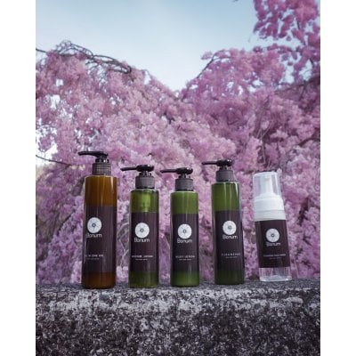 アミノ酸系洗浄成分でお肌に優しく、泡立ちもよく、成分は和漢エキスを6種類以上配合、(一般的には洗浄成分のみの場合も多い)更にすべてのシリーズに桜エキス(ソメイヨシノ)を配合する事で「日本」らしさを表現しました。