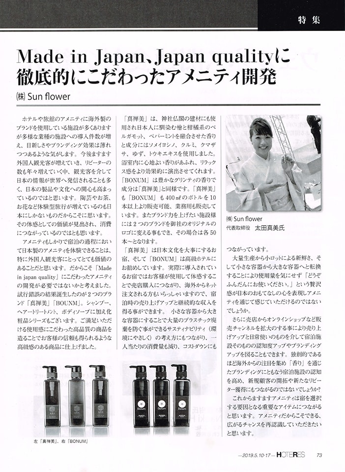 「Made in japan,japan qualityに徹底的にこだわったアメニティ開発」