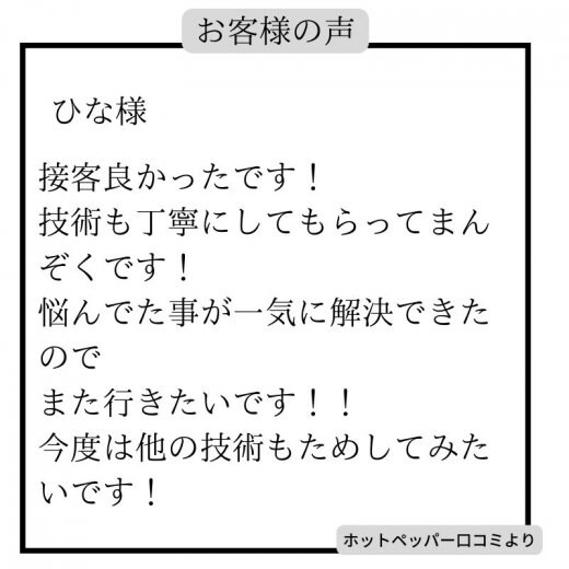 一番下のギャラリーにもお客様のお声あります。ぜひご覧ください。