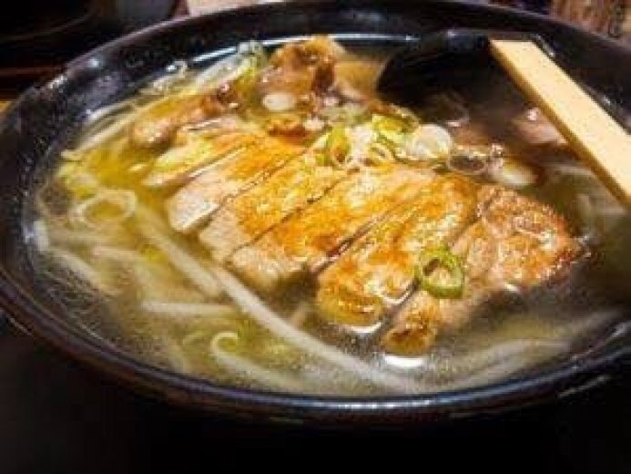 ● 冷凍肉タンメンは豚ロース肉を醤油ベースのタレでソテーしたものを塩ベースのスープ・麺へトッピングしたもの