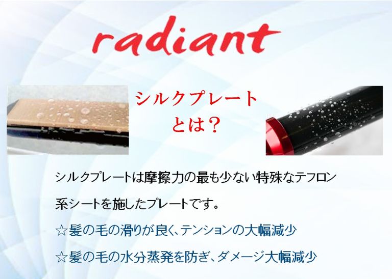R.linkはシルクプレートという特殊なプレートを用いたヘアーアイロンradiant(ラディアント)の生みの親であるBnextから許可を頂いたradiantヘアーアイロンシリーズの正規販売店です。