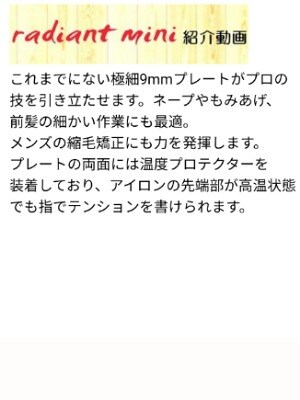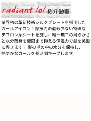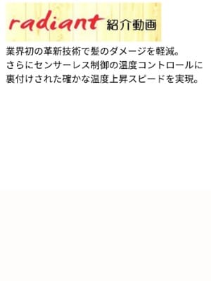 radiantシリーズのヘアーアイロンは美容室の現場で使われており美容師が認めたヘアーアイロンともいえる優れたヘアーアイロンです。
