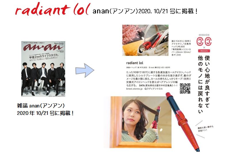 ★radiant lolが雑誌anan (アンアン) 2020年 10/21号 に掲載されました。