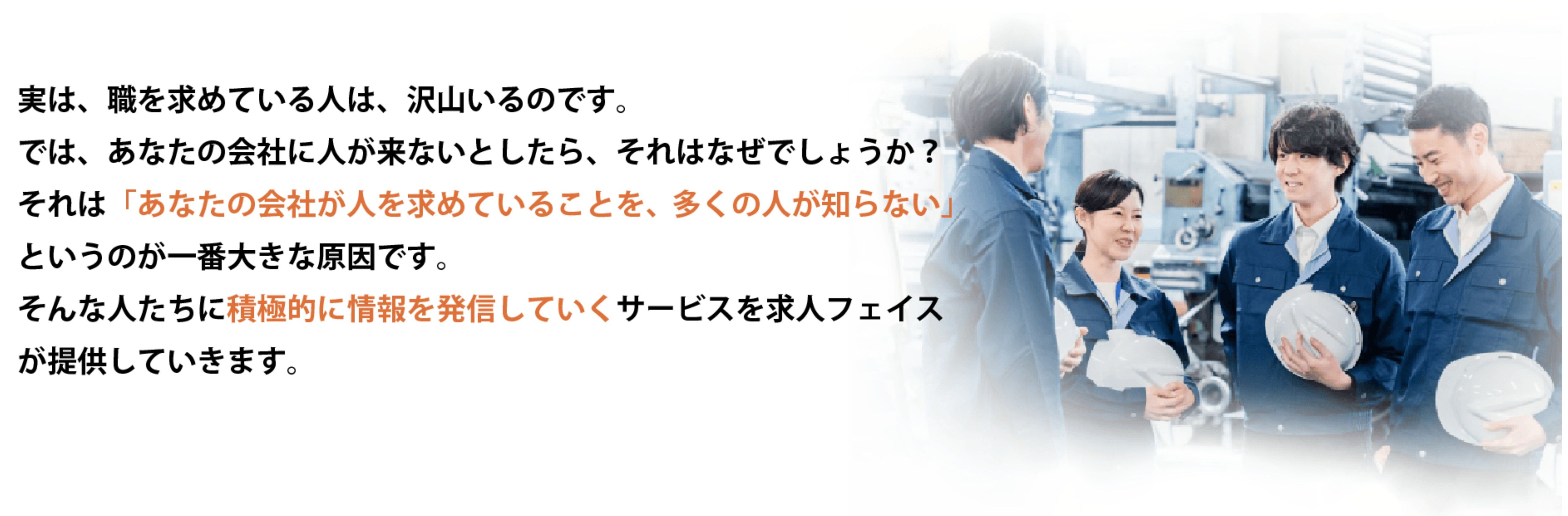 あなたの会社が人を求めていることを、求職者の方へ届ける役目に、求人フェイスを選んでいただけるよう精進していきます。